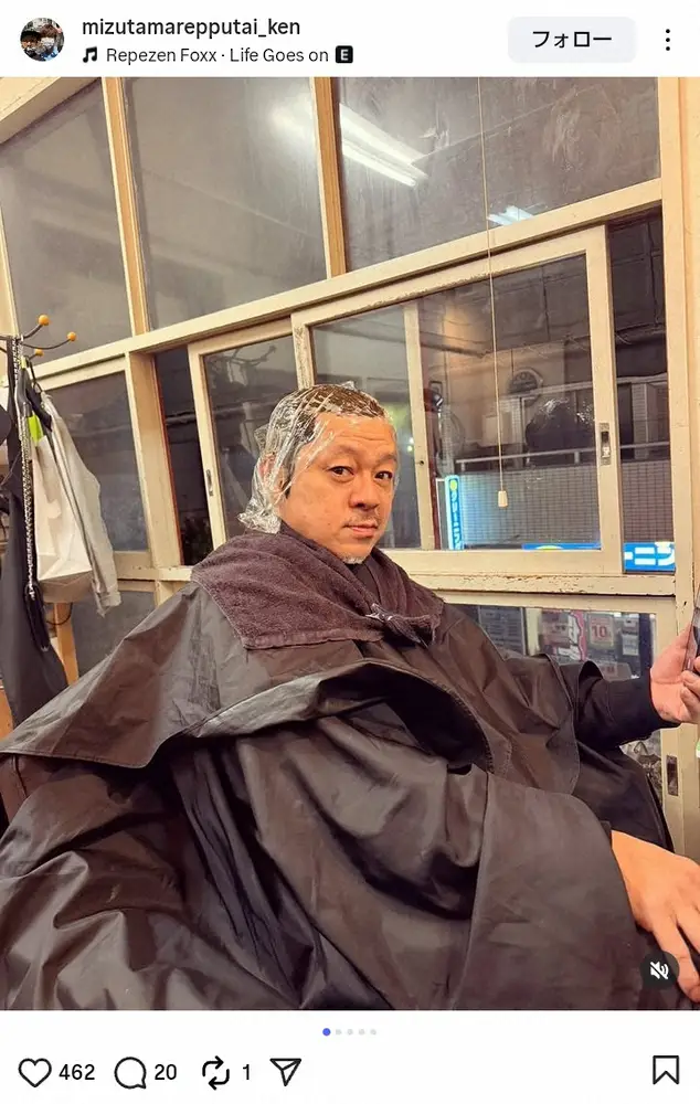 お笑いコンビ「水玉れっぷう隊」のケン(56)が27日、自身のインスタグラムを更新。白髪染めでアレルギー症状に見舞われたことを明かした。