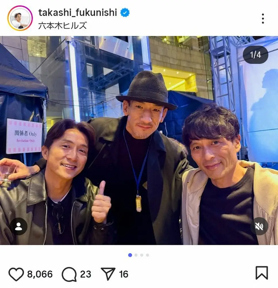 福西氏の投稿に、フォロワーからは「最強のメンバー 大大大好きな三人 さいこーーーー」「すごい!黄金世代!私の青春!めちゃダンディーな方々」「最高過ぎます かっけー」「激アツ」といった反響が寄せられている。
