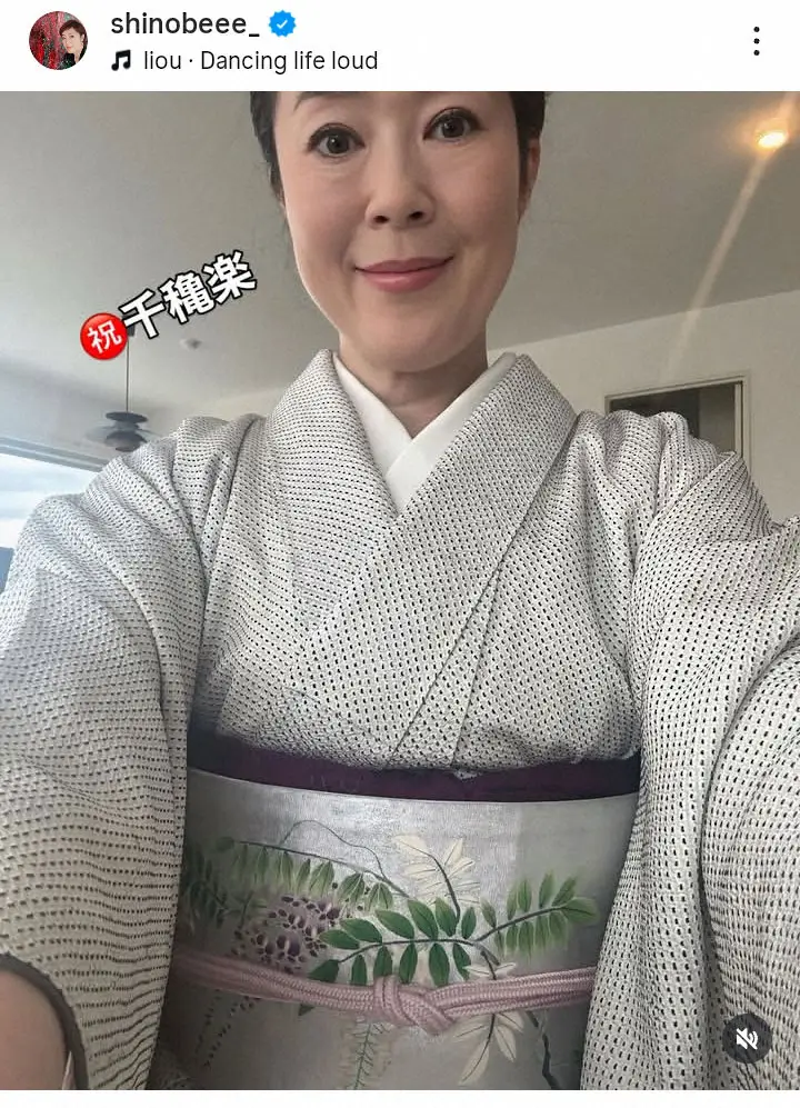眞秀は尾上右近と夜の部「連獅子」に出演。今月、着物姿で歌舞伎座へ向かう姿を投稿してきた寺島は「最後は、母の実母の着物。それが母へ。それが、私へ。雨で少しひんやりしますがこの総絞りは優しく包んでくれます」と母の女優・富司純子から受け継がれた総絞りの着物に藤の花の帯を合わせたショットを披露。ほほ笑む姿に「祝千穐楽」と添えた。