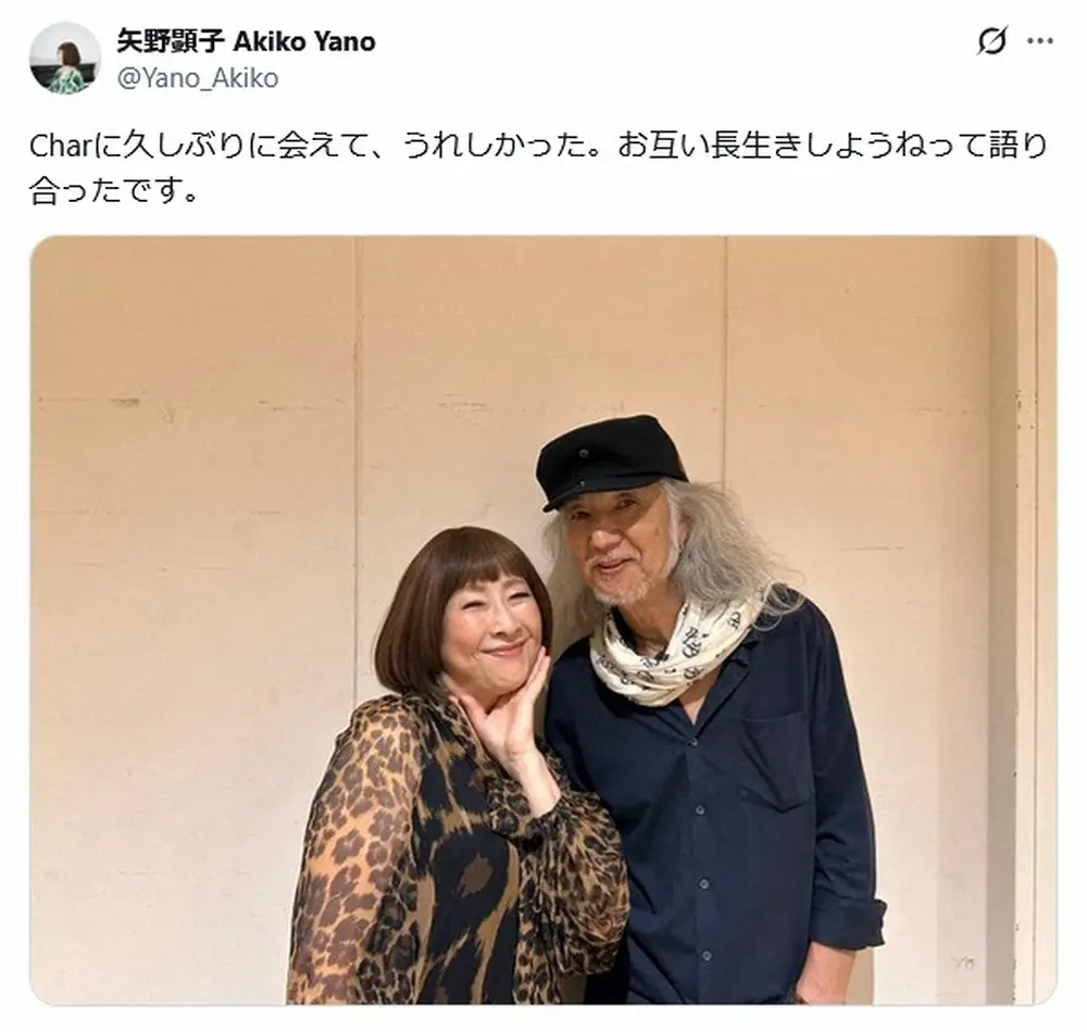 シンガー・ソングライターの矢野顕子(71)が29日、自身のX(旧ツイッター)を更新。日本を代表するギタリスト・Char(70)と再会したことを伝えた。