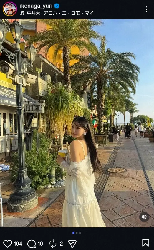人気レースクイーンの池永百合(30)が30日、自身のインスタグラムを更新。沖縄・アメリカンビレッジでのリゾートワンピ姿を披露した。