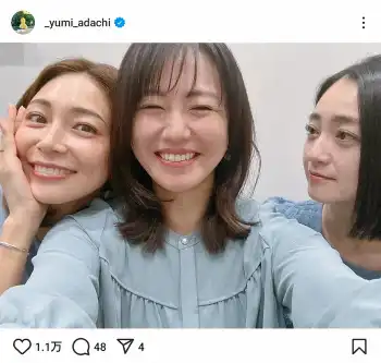 安達祐実が投稿した人気女優らとのオフショに「すごい美人三姉妹」「美女尽くし」「ちょっと怖い」
