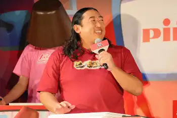 ロバート秋山 初の最高名誉顧問に就任「マジでうれしい!」 ミント色ジャケット着こなし社長におねだり
