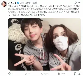 フィフィ 「息子が21歳に」親子2S公開 「すっごいかわいい」「イケメンすぎ」と反響