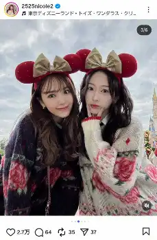 藤田ニコル 「お揃いのニットを着て」人気モデルとTDL「ゆらるん尊い」「即保存」「可愛すぎる」の声