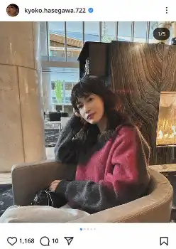 「髪切りました?」46歳・長谷川京子の黒タイツ×前髪下ろしたツヤ肌ショットに反響「本当にかわいい」