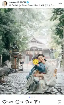 橋本マナミ 5歳長男の七五三、上品着物で参拝親子S 「綺麗なママ」「ほんと素敵な親子」の声