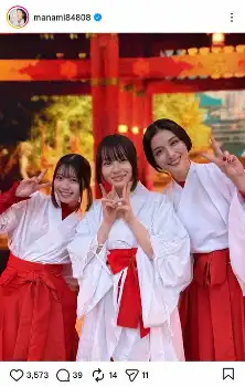 橋本マナミ 「可愛い娘たち」と巫女姿で3ショットにファン「萌えます」「美しいが渋滞」