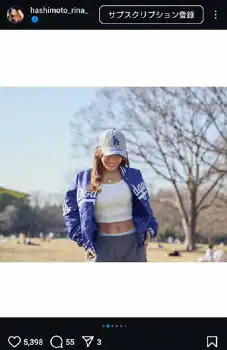橋本梨菜 “ドジャース・スタイル”コーデ披露に「どんだけ可愛いねん」「ミサモに負けてないよ」