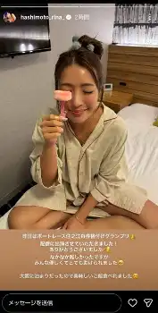 橋本梨菜 ナマ脚パジャマ姿でのベッド・ショットを公開し「大阪に泊まりだったので…」