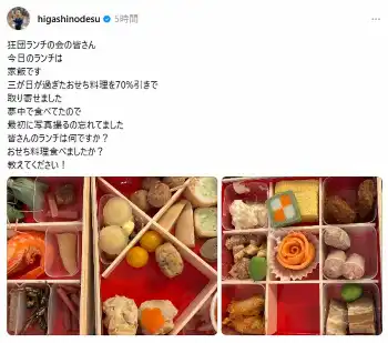 東野幸治「70%引きで取り寄せました」意外なランチ報告にファン「まさか」「凄いお得」「美味しそう」