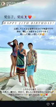 窪塚洋介の美人妻 長男・愛流の21歳の誕生日を祝福「幅広く活躍することができて母として嬉しい限り」