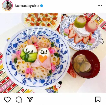 熊田曜子 お手製“ひな祭り料理”が並んだ華やかな食卓に「食べるのが勿体ない」「かわいい!」の声