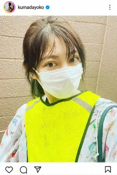熊田曜子 黄色いベスト姿にファン衝撃「隠しきれないオーラ」「横断できない」「誘導されたい」の声