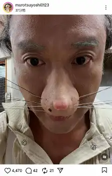ムロツヨシ 衝撃の自撮りにファン恐怖…「ひぃーーー」「メイクさん凄い」「リアルすぎます」「怖い怖い」