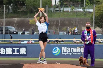 中島史恵が愛犬と始球式「あっという間の出来事」イースタン・リーグ 西武―日本ハム戦