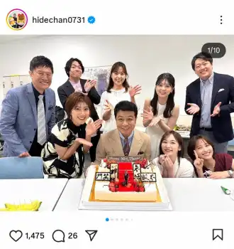 中山秀征 一足早く「シューイチのみんなから誕生日をお祝い」仲良し集合ショット披露し感謝