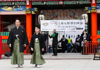 尾上菊五郎、菊之助親子 京都・八坂神社でお練り&奉納舞 「これからも親子で精進して参る覚悟を」