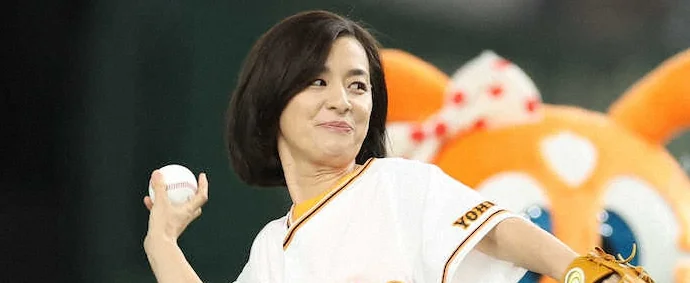 尾野真千子“伝統の一戦”始球式に登場!ノーバンならずも原監督ニンマリ ネットも歓喜「可愛らしい」