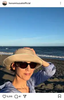 鈴木保奈美 夕暮れの湘南の海でさわやか自撮りショット、茅ケ崎のシンボル「見えてる、はずなんだけど」