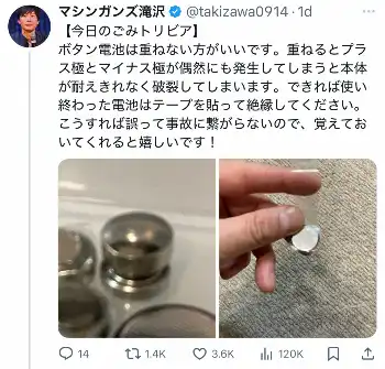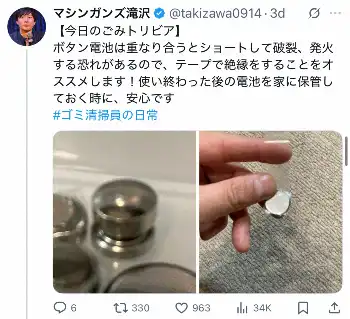 重なると「破裂、発火する恐れがある」モノ“ごみ清掃員芸人”が警鐘「テープで絶縁を」