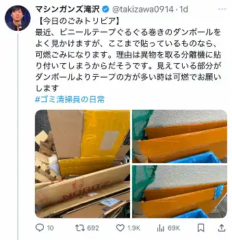 「最近よく見かける」段ボールは「資源」ではなく「可燃」に “ごみ清掃芸人”呼びかけ「助かります」の声