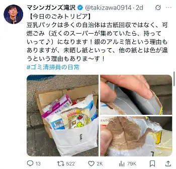 多くの地域で「豆乳容器は古紙回収ではない」ワケ“ごみ清掃員芸人”が説明 「牛乳パックと違い…」