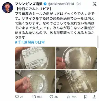 「プラ資源のシールの剥がし方はざっくりで大丈夫」“ごみ清掃員芸人”が紹介「知りたかった」の声