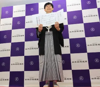 藤井新名人 「温故知新」と揮毫 谷川17世名人の逸話を意識 4勝1敗での獲得から一夜明け取材