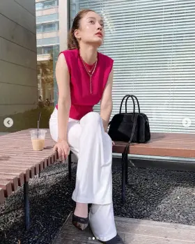 谷まりあ ピンクノースリーブ&白パンツ姿披露に「ピンクがよく似合う」「可愛すぎ」「素敵です」
