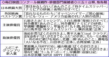 毎日映画コンクール 各賞候補出そろう 男優・女優の区別を初撤廃 主演俳優に河合優実らノミネート