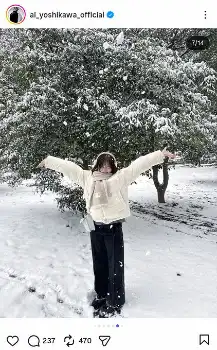 吉川愛 真っ白銀世界ではしゃぐ姿に「尊すぎる」「雪の妖精さん」「愛おしい」とファン大絶賛