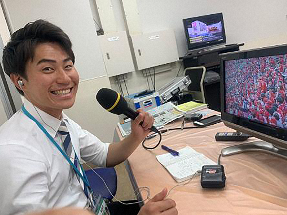 YTV・平松翔馬アナ “ひとりカラオケ”でスポーツ実況練習
