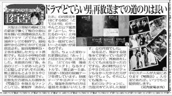 2014年9月17日掲載のスポニチ連載 Photo by 提供写真 少年時代に熱中していた「どてらい男」 待ちわびていた西郷輝彦さんとの… ギャラリーで見る この記事のフォト 菊水丸店主 珍宝堂の写真一覧 もっと見る