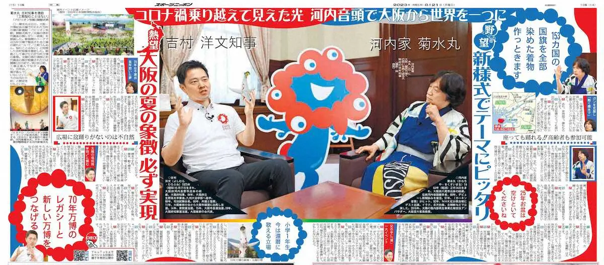 大阪府の吉村知事と筆者の対談を伝えるスポニチ大阪版 Photo by スポニチ 長年の夢、大阪万博で「河内音頭」を熱唱します ギャラリーで見る この記事のフォト 菊水丸店主 珍宝堂の写真一覧 もっと見る