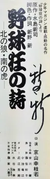 ちなみに「野球狂の詩」の1エピソード「北の狼・南の虎」はアニメ映画化され、斉藤由貴さん主演でテレビドラマにもなっている名作。浪曲化のレコードは、まさに珍宝です。水島さんのご冥福をお祈りいたします。(河内家菊水丸)
