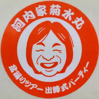 そして「出陣式」の際、入場証明シール=写真(2)=を胸元に貼ってもらっていましたが、今回は菊水丸マスクを配布=写真(3)。会場は、私の笑顔であふれかえりました。(河内家菊水丸)
