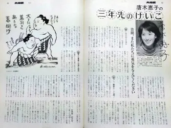 先日、第95回の収録にお越し頂いたのは、浪曲師春野恵子さん。実は、読売系「進ぬ!電波少年」で、お笑い芸人・坂本ちゃんの家庭教師ケイコ先生として人気を博した後、浪曲の世界に入るまでの間、私が小学5年生から定期購読していた月刊「大相撲」に「三年先のけいこ」という連載を持っておられたのです。