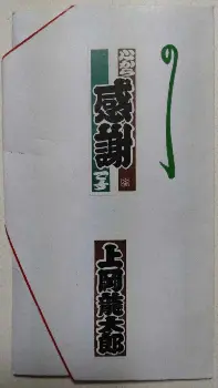 振り返ると、それも名人芸の間でありましょうが、黙っている上岡師匠と見つめ合うのは、まことに貴重な体験。「ノックさんが急に参院選に出馬して漫画トリオは解散。そこからが苦労の道でした。しかし、二度と書くことのなかったサインでも、覚えてるもんやねぇ」とニッコリ。その時に、このポチ袋を頂きました。上岡龍太郎師匠のご冥福をお祈り申し上げます。 (河内家菊水丸)