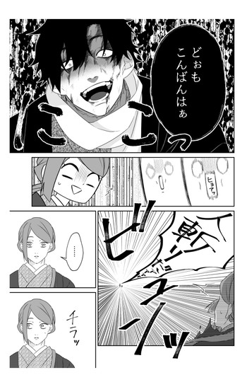 今回の作品は「東京アニメーションカレッジ専門学校」の学生さん、ペンネーム"浜木綿"さん作のマンガ作品「優しい人斬り守護霊さん」です。