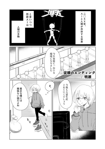 今回の作品は「東京アニメーションカレッジ専門学校」の学生さん、ペンネーム"明瀬"さん作のマンガ作品「従順のエンディング」です。