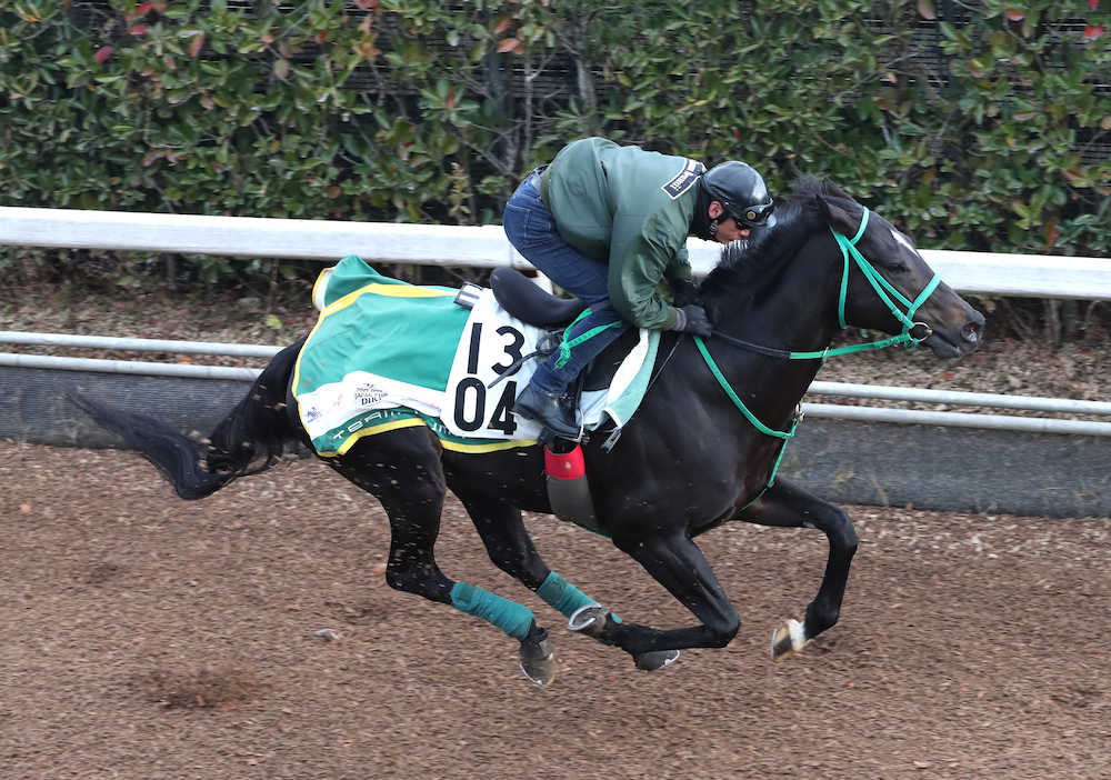 タニノフランケルは坂路でサッと併せ馬。アールジオール(3歳未勝利)相手に4F55秒6〜1F12秒8。フットワークにブレはなかったが2馬身遅れた。ただ、辻野助手は意に介していない。「流す程度なので遅れたことは気にしなくていい。動きはまずまず。ハンデが軽い(53キロ)のもいい」。ご存じウオッカの子。その第4子で初めて重賞Vのチャンスが到来した。