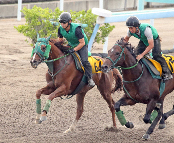 <七夕賞・追い切り>併せで追い切るゴールドサーベラス(左)(撮影・西川祐介) Photo by スポニチ 【七夕賞】菜七子サーベラス 貧欲さも女王級、重賞初Vも頂く!! ギャラリーで見る この記事のフォト 2019年07月04日の画像一覧 もっと見る 2019年07月04日の画像をもっと見る