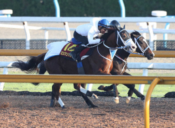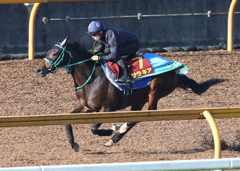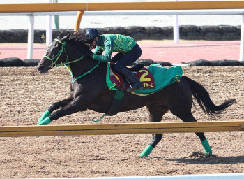 藤岡健師は「バランスが良くて伸びのあるフットワーク。長い距離が合うのは間違いない」と1800メートルへの起用を説明。「初戦から期待できる」と強豪相手にも引かない構え。500キロ近くある雄大な芦毛の馬格にも注目したい。