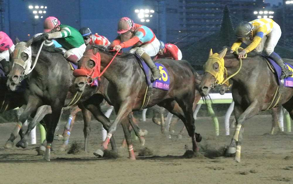 <大井>大激戦の東京シンデレラマイルを制し、重賞初Vを決めたローレライ(中央)。左は2着オルキスリアン、右は3着サンルイビル