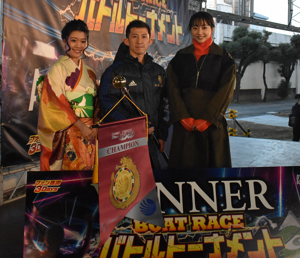 ボートレース尼崎のファン感謝3Days「BOATRACEバトルトーナメント」優勝戦が13日、12Rで行われ、5号艇の瓜生正義(43=福岡)がまくり差して優勝。2着は6枠の徳増、3着福田で3連単4万円超えの波乱決着となった。