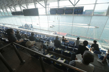 モーター音を合図に、水面際は久々のレースを見るファンの姿、そして歓声があった。少しずつではあるが、かつての日常が戻ってきつつある。