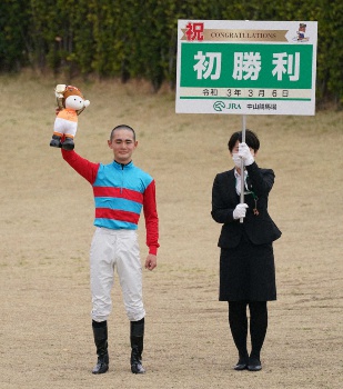 同期一番星は、阪神1Rでメイショウホタルビに騎乗した小沢。4角手前で先頭に並び掛ける積極的な立ち回りで、減量の恩恵を最大限に生かした。小沢は「緊張していましたが、なるべく力まずにレースをしっかりできるよう心掛けていました」と笑顔。師匠の松永昌師は「ハナに立つのが早くて、思わず立ち上がったわ。性格は素直やし、俺とはえらい違う」と弟子の初勝利を喜んだ。小沢は自厩舎のドスハーツで挑んだ最終12Rも豪快に差し切り、この日2勝目となった。