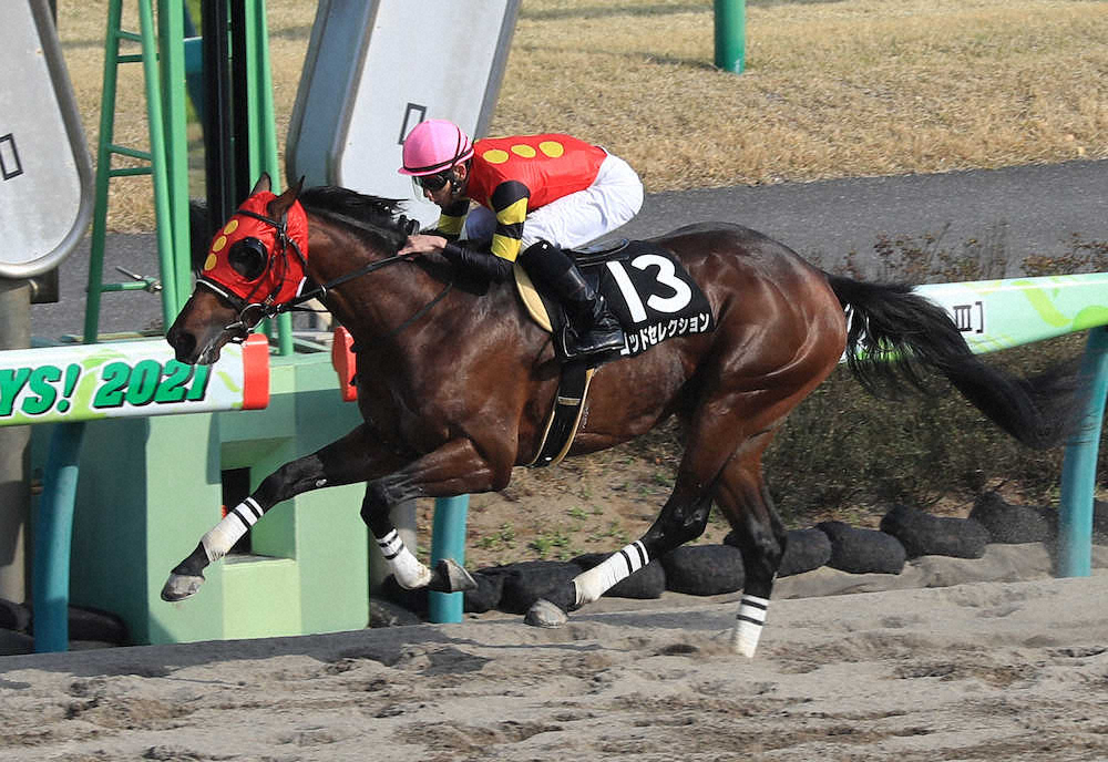ダートの3歳オープン特別・伏竜S(中山10R)は6番人気のゴッドセレクション(牡=今野、父ノヴェリスト)が2番手から抜け出して快勝した。後続を3馬身突き放しての連勝ゴール。手綱を取った中井は「初の中山遠征だったが、ゲート1歩目で不安を全て払拭(ふっしょく)してくれた。テンションの高さが今後の課題だが、素晴らしいレースができた」と振り返った。今野師も「成長途上でこれだけ強い競馬ができたのだから将来性十分」と評価していた。次走は未定。
