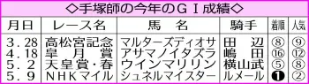 【手塚師18年から4年連続G1・V】手塚厩舎の今年G1成績は4戦1勝。先週のNHKマイルCをシュネルマイスターで制し、18年フィエールマンでの菊花賞制覇から4年連続のG1勝利を挙げている。今回は厩舎2週連続でのG1制覇が懸かる。また、同厩舎は13年にアジアエクスプレスで朝日杯フューチュリティS、アユサンで桜花賞のG1年間2勝を挙げており、厩舎2度目の年間G1複数勝利にも期待だ。